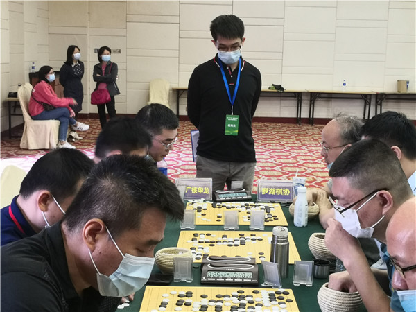 本屆聯(lián)賽在仍在抗疫的形勢下來之不易,賽事組委會非常珍惜,在防疫方面下了一番功夫。本次賽事執(zhí)行主任、著名國手梁偉棠九段介紹說:組委會在本次賽事《補充規(guī)定》中要求“本屆賽事因為疫情防控需要,全體人員必須佩戴口罩,掃碼入場,并全程不得摘下口罩;體溫過高者謝絕入場”。記者觀察到,現(xiàn)場的防疫落實還是比較到位的,一是在賽場入口布置了三人團(tuán)隊,加強(qiáng)了掃碼、體溫檢測、提醒大家戴口罩,凡是入場的隊員、工作人員以及觀戰(zhàn)的圍棋愛好者,都必須進(jìn)行體溫檢測,符合正常體溫的方可入場參賽;二是要求參賽隊員和工作人員戴口罩;三是加強(qiáng)賽場巡查,對沒有自覺戴口罩的在場人員進(jìn)行勸導(dǎo)。總體來說,賽場防疫秩序良好。