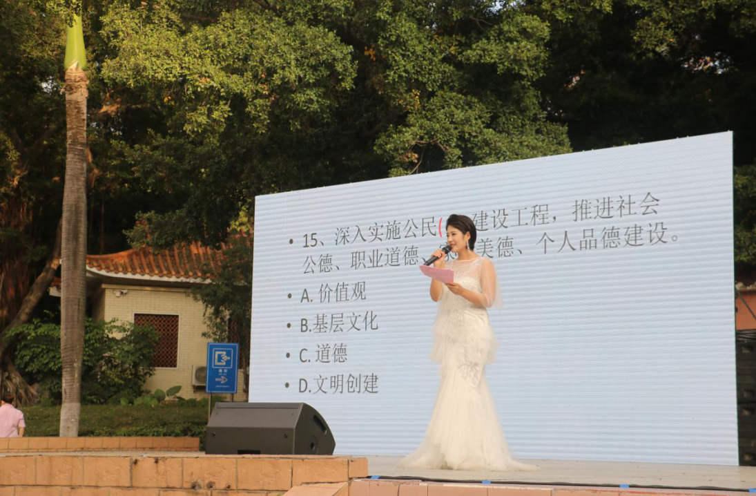 演出在歡快的《永唱中國夢(mèng)》歌舞中拉開了帷幕;懷舊老歌《紅歌聯(lián)唱》經(jīng)典又回味,越聽越喜歡;特色節(jié)目《李玉剛模仿秀》反串女聲,一開口驚艷全場(chǎng)……整場(chǎng)演出高潮迭起,精彩不斷,觀眾們無不拍手鼓掌,歡呼叫好。節(jié)目主持人在每個(gè)節(jié)目之間還以有獎(jiǎng)問答的形式,宣傳黨的十九屆五中全會(huì)的內(nèi)容,觀眾們踴躍參與,大家都說,這樣喜聞樂見的活動(dòng)親切,接地氣,不妨多來幾場(chǎng)。目前,西鄉(xiāng)街道黨工委正在打造“學(xué)習(xí)強(qiáng)國”示范街區(qū),“今天,你學(xué)習(xí)了嗎”已成為時(shí)尚的見面問候語。(孫善文)