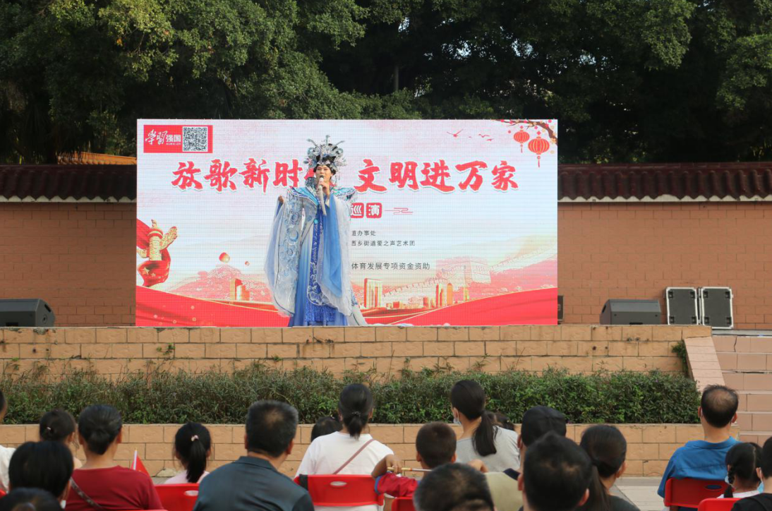 “放歌新時(shí)代 文明進(jìn)萬家”文藝巡演由深圳市寶安區(qū)西鄉(xiāng)街道辦主辦,深圳市寶安區(qū)西鄉(xiāng)街道愛之聲藝術(shù)團(tuán)承辦,寶安區(qū)宣傳文化體育發(fā)展專項(xiàng)資金資助。來自愛之聲藝術(shù)團(tuán)的深圳一線文藝工作者們通過文藝表演的形式為廣大居民奉獻(xiàn)精彩的文藝大餐,用群眾喜聞樂見的形式展示西鄉(xiāng)發(fā)展變化,再現(xiàn)有志之士在西鄉(xiāng)干事創(chuàng)業(yè)、成就夢(mèng)想的情景,并宣傳了黨的十九屆五中全會(huì)精神,深受群眾歡迎。