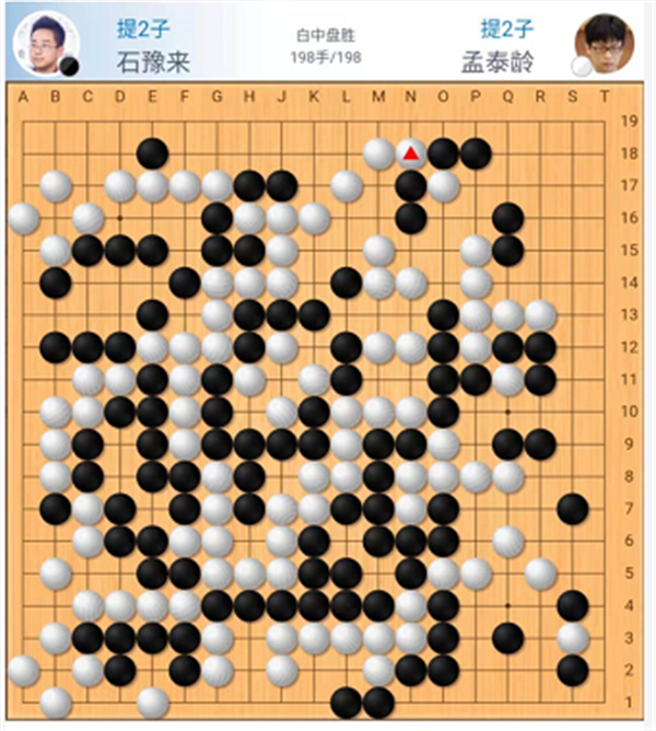 慢棋第三臺由小將石豫來三段執(zhí)黑對陣孟泰齡七段。開局黑左上連續(xù)失誤,導(dǎo)致局面早早進(jìn)入不利的戰(zhàn)斗。之后黑棋四處求戰(zhàn)終顯勉強(qiáng),最終以死去中央大龍的代價(jià)吃掉白棋右邊一塊大棋,依然以較大差距落敗,石豫來執(zhí)黑中盤負(fù)孟泰齡。