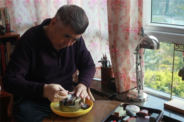 最后,請(qǐng)寧老師對(duì)治印的后學(xué)說幾句,他說“什么時(shí)候都不晚,只要肯開始,找到好的老師,持之以恒,便有機(jī)會(huì)成功”,自己的經(jīng)歷就是一個(gè)證明吧。也是,當(dāng)下中國逐漸進(jìn)入“老齡化社會(huì)”,許多老人退休之后“無所事事”,等退體金、等“臨門一腳”成為常態(tài)。而寧起興憑著一份興趣,六十歲而后拓出一片天地,堪為榜樣!令人欣喜是,他的行為對(duì)子孫也是一種言傳身教,小外孫女2歲時(shí)在街上看到篆字招牌,馬上就說這是姥爺?shù)淖?。平日,她還學(xué)著姥爺讀書刻章的模樣,做手工、畫畫,常有創(chuàng)意??吹竭@一幕,作為古稀老人,寧起興感到非常欣慰。他說,自己做到了“老有所為”,還產(chǎn)生了教化子孫的效果,開心是自然的。他希望更多的人喜歡中國篆刻藝術(shù),希望更多的退休老人們生活充實(shí)、老有所為!