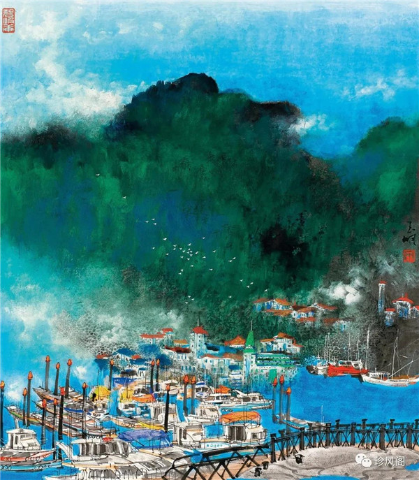 來自南京而定居于深圳的宋玉明,試圖將新金陵畫派表現(xiàn)現(xiàn)實(shí)的變革精神用于現(xiàn)代城市山水畫的探索上。作為新金陵畫派的第二代畫家,宋玉明直接承傳了宋文治表現(xiàn)現(xiàn)代太湖人居環(huán)境秀潤(rùn)而精巧的家法,并將此種大山景加小民居的畫法轉(zhuǎn)用到深圳城市形態(tài)的表現(xiàn)上。這里,我們一方面可以看到深圳作為一個(gè)新興的現(xiàn)代城市借山而筑、注重自然環(huán)境在城市生態(tài)建設(shè)上的積極作用;另一方面,深圳這種與自然相統(tǒng)一的現(xiàn)代化城市建設(shè)理念,也為宋玉明進(jìn)行城市山水畫創(chuàng)作提供了完美的表現(xiàn)對(duì)象。在《深圳文錦渡》等作品里,我們看到了畫家巧妙地將城市現(xiàn)代建筑與自然山水融為一體的表現(xiàn)。這些畫作,大多以勾線渲染的方法表現(xiàn)遠(yuǎn)景中的商用或市政建筑設(shè)施,也因這些建筑被設(shè)置在中遠(yuǎn)景,不僅減少了建筑塑造的困窘,而且突出了這些人居建筑與自然相得益彰的和諧關(guān)系。這些畫作,從嚴(yán)格的意義上說,仍然是山水畫,而宋式小散鋒皴以及云煙雨霧的渲染,也為畫面增添了幽深、恬靜、高雅、平和的意趣與境界。這些畫作,讓我們所熟悉的城市從一個(gè)相對(duì)遙遠(yuǎn)的視角來觀看,既因距離產(chǎn)生了一種從未體驗(yàn)過的美感,也較好地體現(xiàn)了現(xiàn)代城市與自然占位的協(xié)調(diào)統(tǒng)一、舒適宜居的比例關(guān)系。