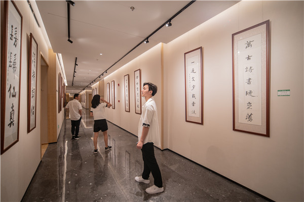 書(shū)法愛(ài)好者現(xiàn)場(chǎng)觀摩情形。