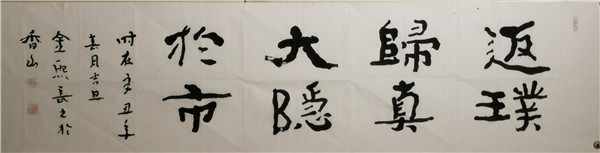 2011年隱居廣東中山,處江湖之遠(yuǎn)亦不忘躬耕,以書(shū)立德、以筆潤(rùn)身,專(zhuān)注于佛法經(jīng)文、家學(xué)文化和百家家訓(xùn)書(shū)法的研究,并創(chuàng)辦五福書(shū)院,通過(guò)教授古琴、書(shū)法、四書(shū)誦讀等形式開(kāi)班授課,以中國(guó)傳統(tǒng)文化踐行家學(xué)文化。歸隱而不忘憂(yōu)國(guó),金熙長(zhǎng)先生自隱居以來(lái),在珠海、中山、深圳、上海等地舉辦了多次《以書(shū)立德、以筆潤(rùn)身——常福居士百家家訓(xùn)、百種心經(jīng)書(shū)法作品全國(guó)巡展》;2020年8月,金熙長(zhǎng)先生的《方正字跡-金熙長(zhǎng)標(biāo)題體》在方正字庫(kù)正式上線(xiàn)。