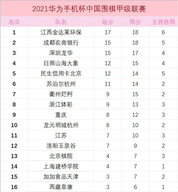 見圳客戶端?深圳新聞網2021年6月7日訊(記者周錦春)華為手機杯男子圍甲聯(lián)賽在浙江長興重燃戰(zhàn)火, 深圳龍華隊1:3不敵日照山海大象隊跌落榜首,排名被江西和成都超越降至第三位。上屆冠軍江西金達萊環(huán)保隊本階段首輪繼續(xù)保持勝勢,3比1擊敗北京棋院隊,金身不敗豪取6連勝,并登上積分榜首位。