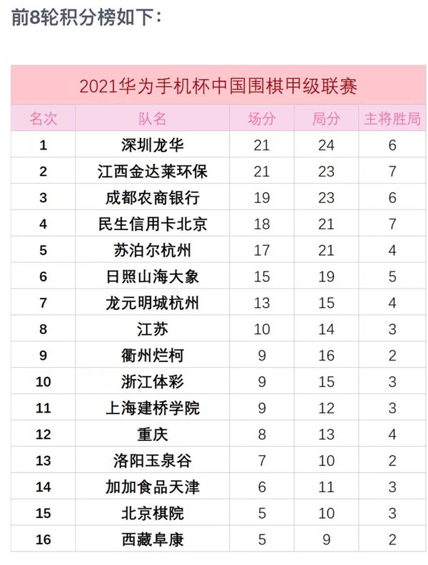 2021華為手機(jī)杯中國圍棋甲級(jí)聯(lián)賽常規(guī)賽第八輪深圳龍華隊(duì)4:0 洛陽玉泉谷隊(duì)
