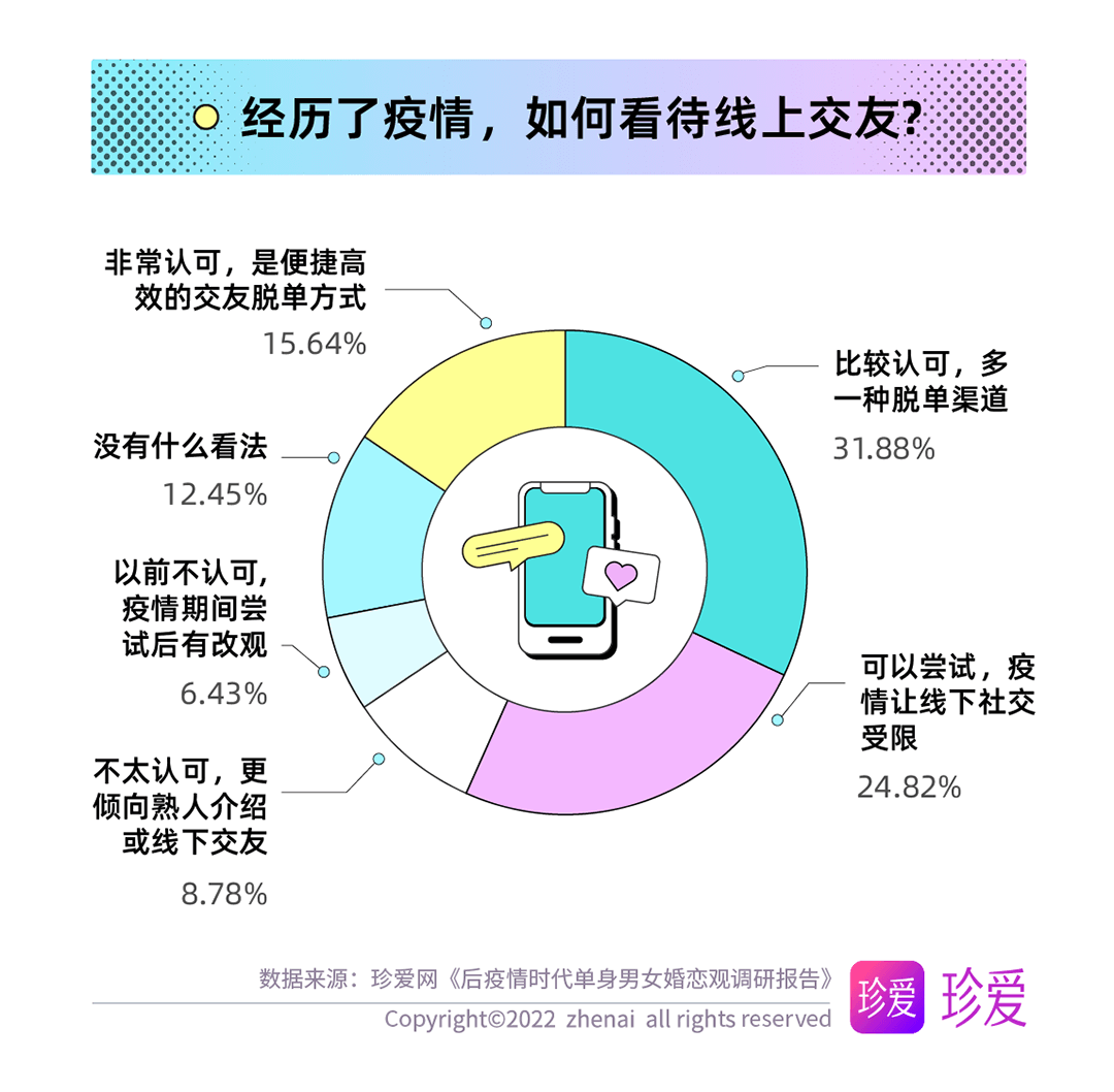 讀特客戶端·深圳新聞網(wǎng)2022年6月14日訊(記者 葉梅)疫情讓人們的生活狀態(tài)、工作方式和個人習慣都發(fā)生了顯著變化,而對單身人群而言,疫情三年他們對感情的態(tài)度又有哪些改變?現(xiàn)在的他們如何看待親密關系?珍愛網(wǎng)聚焦后疫情時代單身人群的婚戀觀發(fā)起調研,探究疫情期間單身人群在戀愛期待、擇偶標準、脫單難度等方面的變化。本次調研共回收問卷9862份。