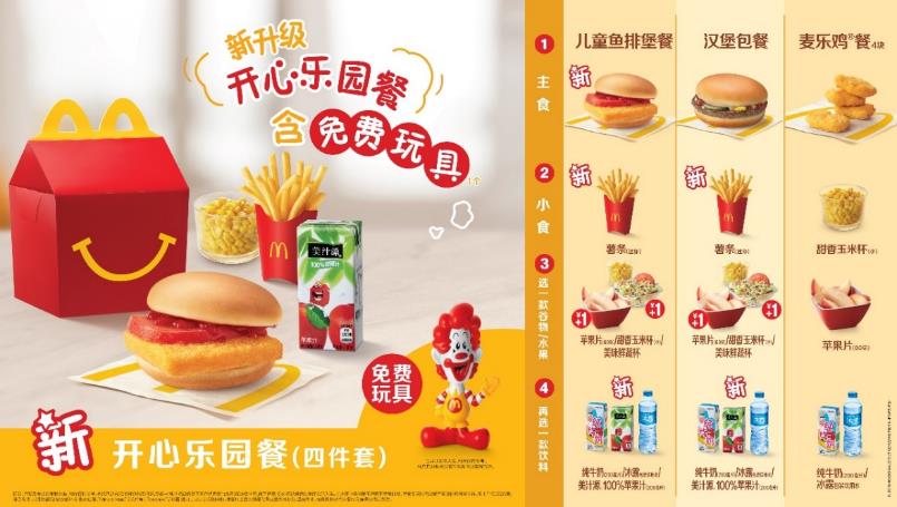 新開(kāi)心樂(lè)園餐餐單,由三件套升級(jí)為四件套,增加蔬果的選擇及比重