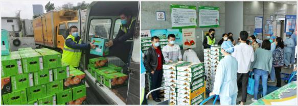 鑫榮懋聯(lián)合上游合作伙伴捐贈(zèng)的15噸新鮮水果已抵達(dá)深圳市第三人民醫(yī)院。