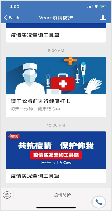 在疫情防控部分,維他奶準(zhǔn)備充足,全力保障每一位員工的健康和安全。首先,利用企業(yè)微信,維他奶建立每日健康監(jiān)控機(jī)制,持續(xù)追蹤全體員工健康狀況。其次,公司利用微信小視頻等媒體工具制作防控指引和要求,讓員工掌握防控知識(shí)和防控要求。除了必不可少的佩戴口罩、測量體溫、健康問詢登記和辦公場所和生產(chǎn)區(qū)域的消毒工作外,維他奶還建立全方位覆蓋的防控組織和應(yīng)急預(yù)案,設(shè)立疫情防控專員,鼓勵(lì)職能部門的員工使用在線會(huì)議等溝通工具以減少近距離接觸,實(shí)現(xiàn)工作會(huì)議和防疫安全的兩不誤。