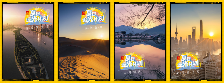 7月6日,麥當(dāng)勞“夏日追光計(jì)劃”從西安大雁塔出發(fā),來到長沙橘子洲頭,領(lǐng)略“恰同學(xué)少年”的意氣風(fēng)發(fā)。從敦煌、漠河,到青海湖和張掖,一起尋找“詩與遠(yuǎn)方”??缭角鄭u、杭州、福州、大連、蘇州和平遙,看遍“人間煙火”。在廣州小蠻腰和深圳東門,感受“追夢(mèng)赤子心”。為期28天的追光之旅,暖心浪漫的麥當(dāng)勞為大家搜集不同城市的日出,并用四個(gè)主題串起28地。敬請(qǐng)關(guān)注麥當(dāng)勞嗶哩嗶哩(B站)帳號(hào),鎖定連續(xù)28天的直播,也可以訪問麥當(dāng)勞官方網(wǎng)站觀看每天日出的精華視頻。