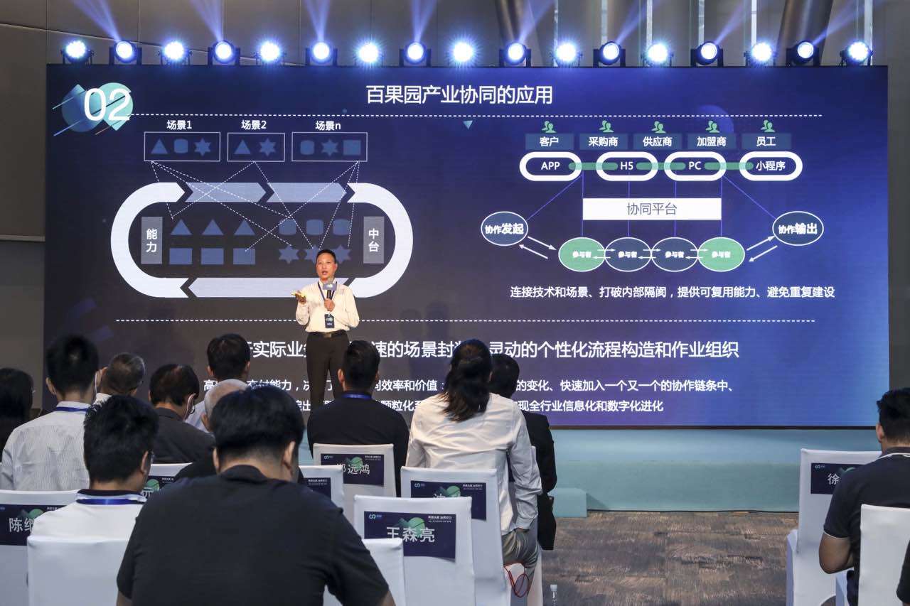 “雁陣”協(xié)同平臺(tái)通過(guò)SaaS、APaaS組建和iPaaS,將場(chǎng)景應(yīng)用和任務(wù)驅(qū)動(dòng)完美地連接在了一起。百果園集團(tuán)副總裁徐永劍表示,“連接型”才是以前傳統(tǒng)OP軟件時(shí)代的弱項(xiàng),是新SaaS產(chǎn)品的甜區(qū)。作為“雁陣”協(xié)同平臺(tái)上的業(yè)務(wù)生態(tài)之一“百果園”,便是將其在生鮮領(lǐng)域多年來(lái)的IT生態(tài)能力進(jìn)行開(kāi)放和共享。