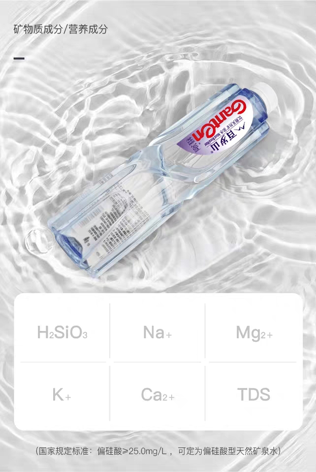 經(jīng)小編了解,百歲山天然礦泉水是采自于地下深層巖石裂隙中,從不使用湖水、河水、水庫水等地表水。而且,百歲山的礦泉水源具有《采礦許可證》,屬于國(guó)家液體礦產(chǎn),如同金礦銀礦。一經(jīng)開采可直接飲用,水源天然無污染,還含有高偏硅酸,以及鉀、鈉、鈣、鎂等豐富礦物質(zhì)及微量元素。正因?yàn)檫@樣優(yōu)質(zhì)珍貴的礦泉水源,才成就了水中貴族獨(dú)一無二的品質(zhì)。