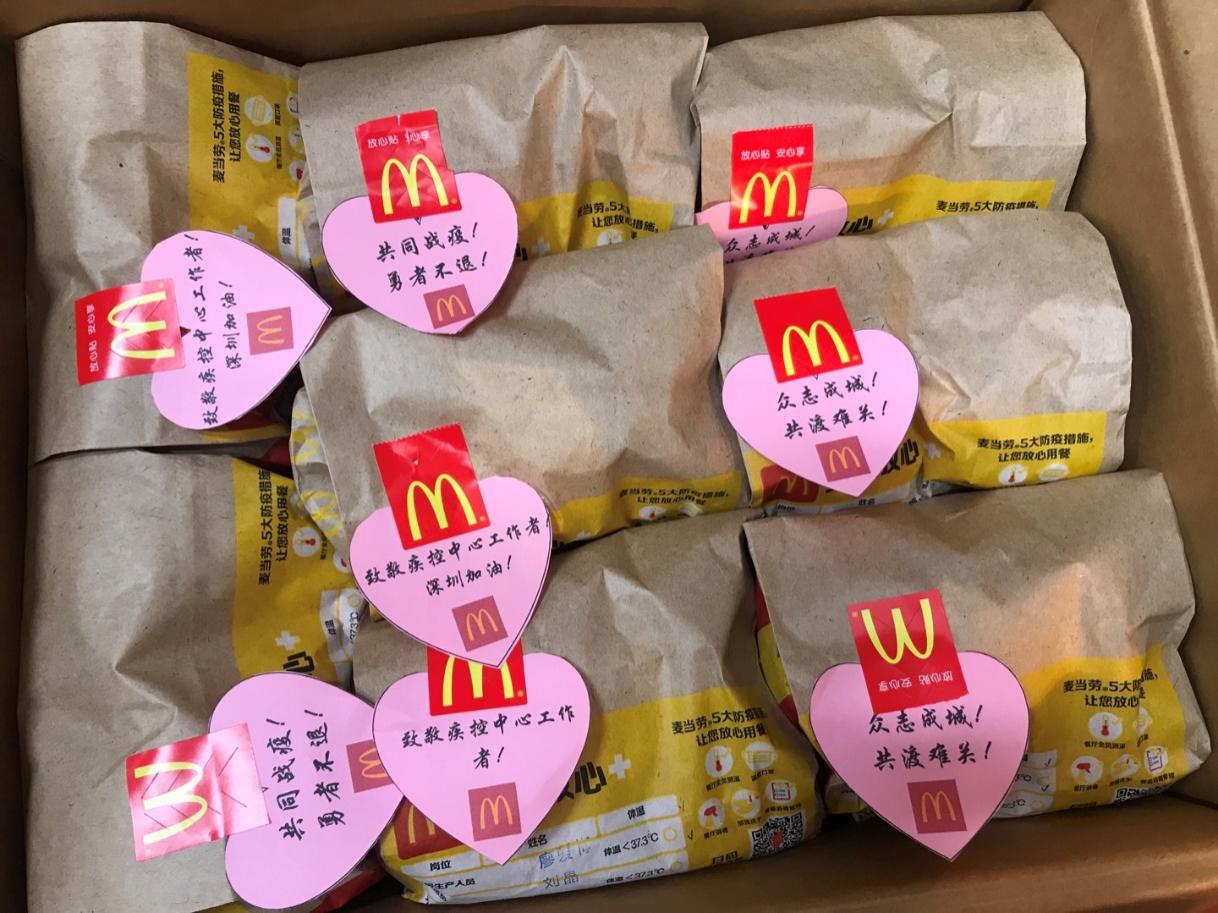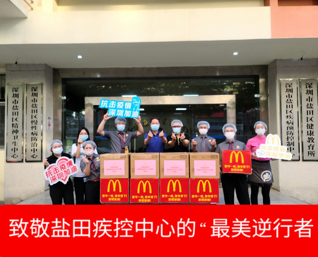 深圳麥當(dāng)勞“麥麥義工團(tuán)”小伙伴們向鹽田疾控中心防疫工作一線的醫(yī)護(hù)人員贈(zèng)送愛(ài)心餐食