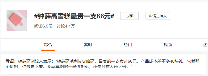 讀特客戶端·深圳新聞網(wǎng)2021年6月16日訊(記者 常軍平)16日下午,因最貴的雪糕賣66元,創(chuàng)始人還表示“愛(ài)要不要”上熱搜一事,鐘薛高進(jìn)行了回應(yīng):“我們被惡意剪輯了”。