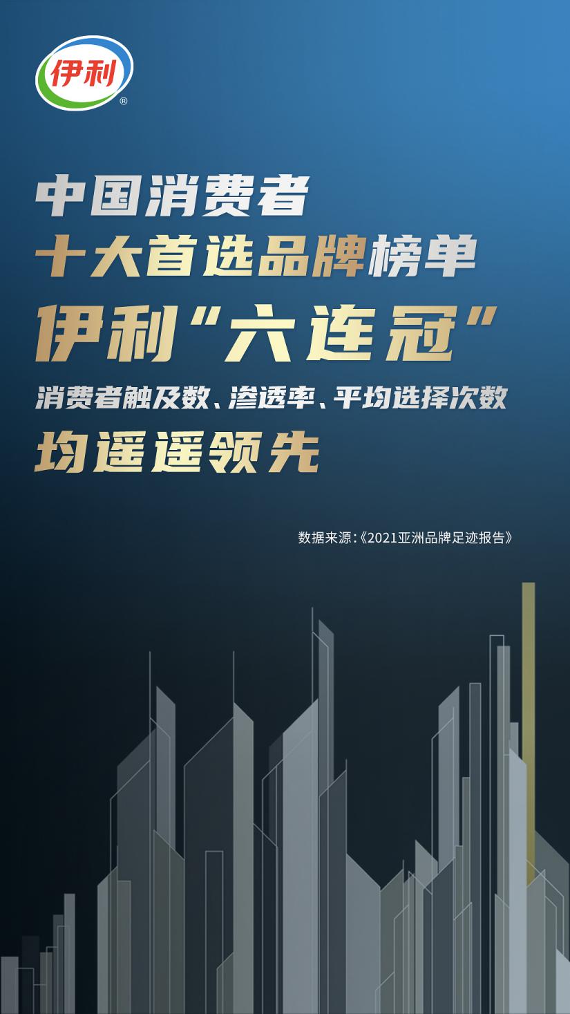伊利連續(xù)六年成為消費者選擇最多的品牌