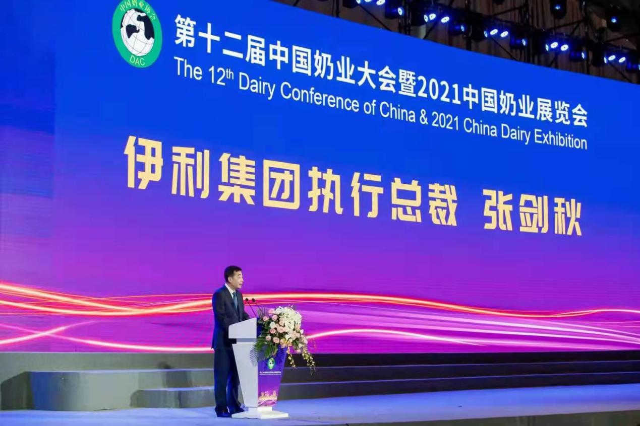 伊利集團(tuán)執(zhí)行總裁張劍秋在大會(huì)上致辭