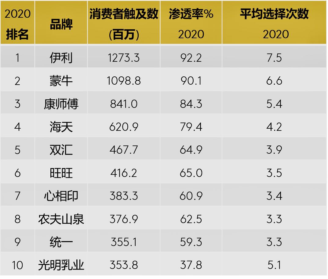 伊利連續(xù)6年穩(wěn)居中國市場消費(fèi)者選擇最多的品牌榜首