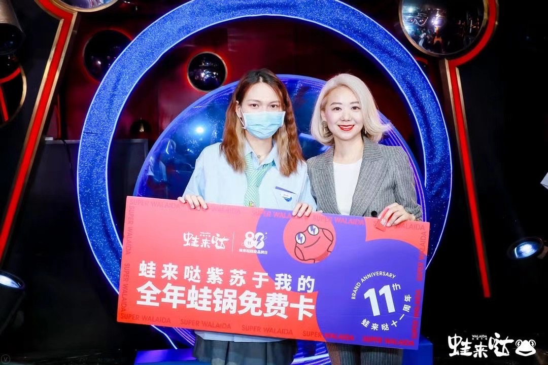 蛙來噠超級品牌日派對上,由蛙來噠董事長羅清親自為“2021年度蛙粉”獲得者頒獎,同時抽取了“蛙來噠全年免排隊卡”以及“蛙來噠全年蛙鍋免費(fèi)卡”等蛙來噠品牌日專屬大獎,將品牌日的氛圍推向高潮。