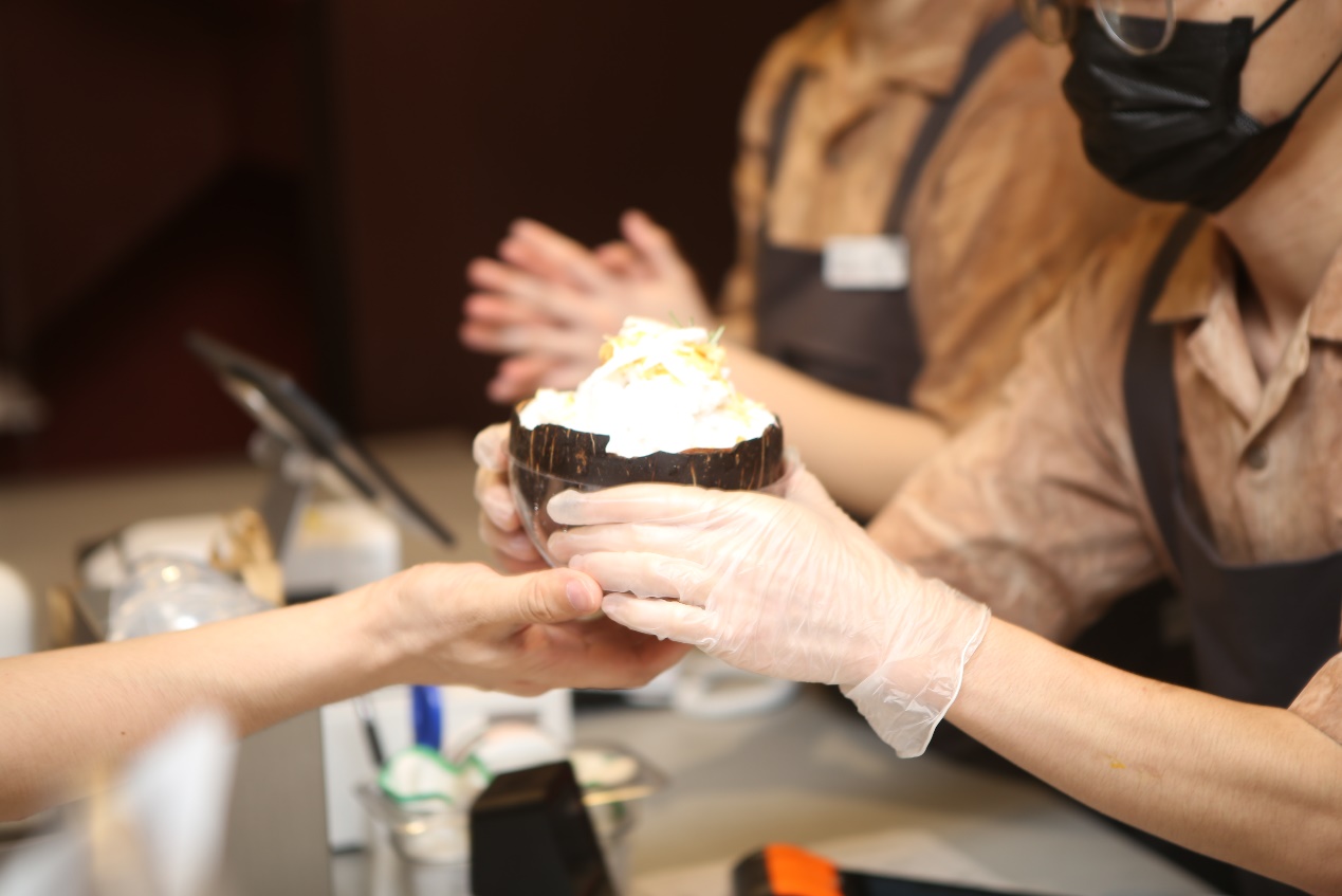 一次性提供如此豐富的手造新品,既是喜茶產(chǎn)品研發(fā)能力的集中體現(xiàn),又是為顧客奉上的極致體驗。記者在現(xiàn)場看到,10點正式營業(yè)后,在一樓點單區(qū),店員們開始耐心地向顧客進(jìn)行新品介紹和推薦。一些顧客則留意到正在進(jìn)行的現(xiàn)場炒冰,“剛剛做的那份是什么?我就要那個!”而二層供應(yīng)的“實在整顆生椰”,也讓不少顧客愛不釋手。