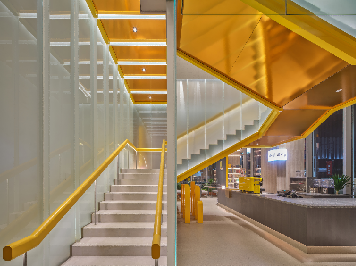麥當(dāng)勞中國(guó)新總部大樓為獨(dú)棟建筑,共有八層,與麥當(dāng)勞經(jīng)典產(chǎn)品“巨無(wú)霸”層數(shù)一致,錯(cuò)落的樓體外觀酷似魔方?!熬逕o(wú)霸魔方MCHQ”展現(xiàn)了麥當(dāng)勞全球餐飲行業(yè)“巨無(wú)霸”的領(lǐng)先地位,“魔方”般的大樓外觀設(shè)計(jì)也彰顯了麥當(dāng)勞年輕潮流、活力創(chuàng)新的形象。室內(nèi)細(xì)節(jié)也亮點(diǎn)滿滿,四至八層使用了專屬的主題配色,標(biāo)志性的 M形樓梯連通核心辦公區(qū)域,創(chuàng)造了更多開(kāi)放協(xié)作的空間感。
