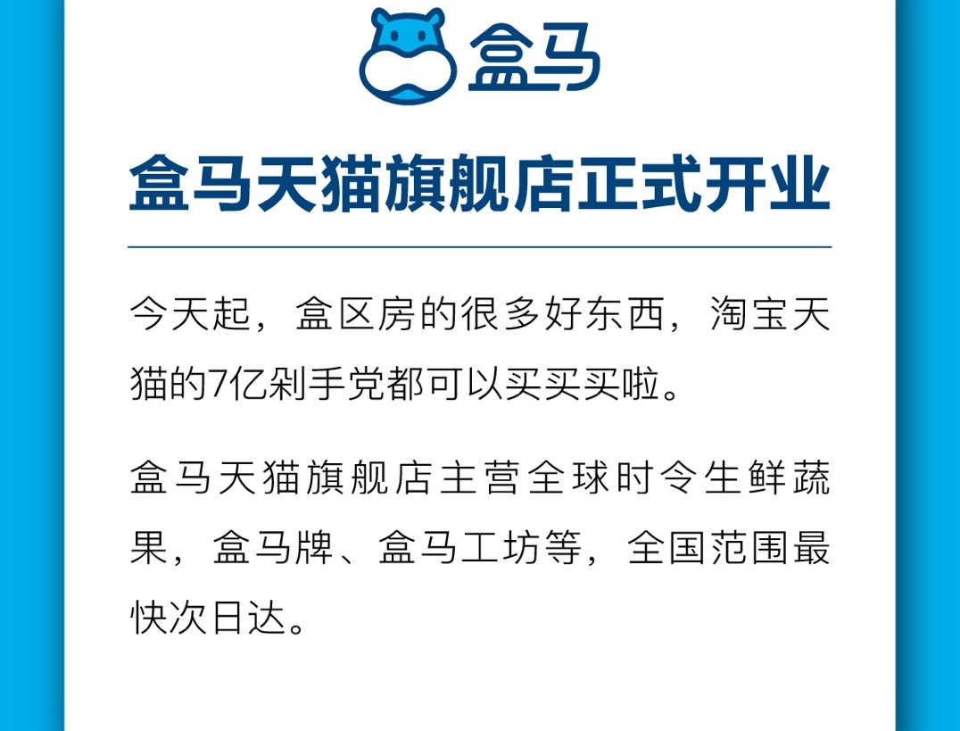 生鮮農(nóng)貨走出盒區(qū)房 盒馬旗艦店登陸天貓開售