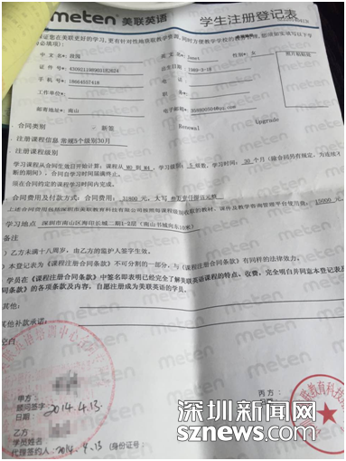 深圳新聞網(wǎng)訊近日,市民段女士向深圳市消委會反應(yīng),自己在南山區(qū)海印長城二期1--2層美聯(lián)英語學(xué)習(xí)中心花了31800元以分期付款的方式報名學(xué)習(xí)英語,因如今有孕在身等原因,希望退學(xué)并退還部分學(xué)費,這一訴求遭到美聯(lián)英語方面拒絕。