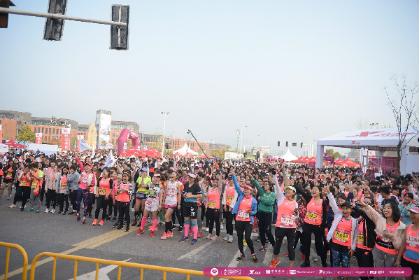 今年賽事現(xiàn)場(chǎng)最大的亮點(diǎn)在于,取消了開賽儀式,僅保留鳴槍一項(xiàng)流程。主會(huì)場(chǎng)起點(diǎn)區(qū)域沒有了大型噴繪的主席臺(tái),取而代之的是小巧簡(jiǎn)約的發(fā)令臺(tái)。上午7點(diǎn),不間斷的熱身音樂響徹整個(gè)甜蜜小鎮(zhèn),運(yùn)動(dòng)員們?cè)谶M(jìn)入賽道集結(jié)后,配合著音樂,跟隨著健身教練的指引一起熱身。上午8點(diǎn)30分,鳴槍嘉賓們準(zhǔn)時(shí)登臺(tái)鳴槍,全體3000多名跑者一起沖出起點(diǎn)門,化作一片粉紅色的海洋,向著終點(diǎn)奔去?!叭∠_賽儀式對(duì)跑者來說是非常貼心的一項(xiàng)舉措,讓我們?cè)谶M(jìn)入賽道之后依然能夠繼續(xù)熱身,時(shí)間一到準(zhǔn)時(shí)開跑,整個(gè)參賽流程也更加流暢了。”參賽選手在賽事現(xiàn)場(chǎng)直言道,簡(jiǎn)化起跑前的儀式流程,對(duì)于跑者來說是一種更好的參賽體驗(yàn)。
