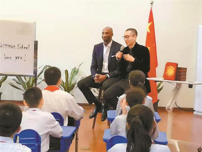 “來了,來了!”隨著人群的騷動(dòng),一個(gè)高大的身影閃了進(jìn)來,科比手捧一束鮮花來到了課堂??票鹊牡絹?,讓大家正襟危坐,聽從偶像的人生教誨。