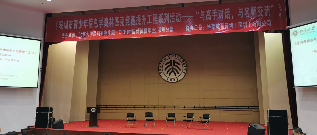見圳客戶端、深圳新聞網(wǎng)8月16日訊 近日,深圳市青少年信息學奧林匹克競賽提升工程系列活動——“與高手對話,與名師交流”在北京大學深圳研究生院國際會議報告廳舉行。本次活動由北京大學深圳研究生院、 CCF(中國計算機學會)深圳分部聯(lián)合主辦,畢莘教育咨詢(深圳)有限公司協(xié)辦。