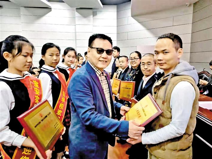 區(qū)慈善會(huì)負(fù)責(zé)人為獲獎(jiǎng)單位頒獎(jiǎng)。