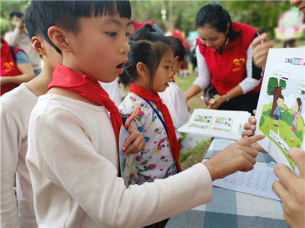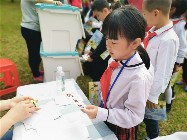 據(jù)悉,本次活動以闖關(guān)的形式,每年級各分10個關(guān)卡,每闖一關(guān)就獲得一個能量動物或者能量植物填補闖關(guān)卡的空白,各年級的學生需要在半小時內(nèi)將闖關(guān)卡的空白處填滿,才算闖關(guān)成功,獲得有校長贈言的書籍一本。關(guān)卡的設(shè)置以語文、數(shù)學和英語三個科別組成,其中,最受孩子們青睞的要數(shù)“筆架說話”這個關(guān)卡,孩子們把自己相像成筆架山的一員,然后介紹自己,有同學說:“我是筆架山的大樹,我可以給大家遮蔭,讓大家不用被太陽曬到?!?、“我是筆架山的石頭,孩子們來筆架山玩的時候,可以把我們拼在一起做拼圖?!?、“我想成為筆架山的暗綠繡眼鳥,就是嘴巴尖尖的,頭上綠綠的,眼睛邊上有點白色的那種,我要站在筆架山的枝頭上盡情歌唱,紅紅的火焰花為我做背景!”......孩子們通過豐富的相信力,盡情在老師與家長義工面前展現(xiàn)臨場的表達能力。