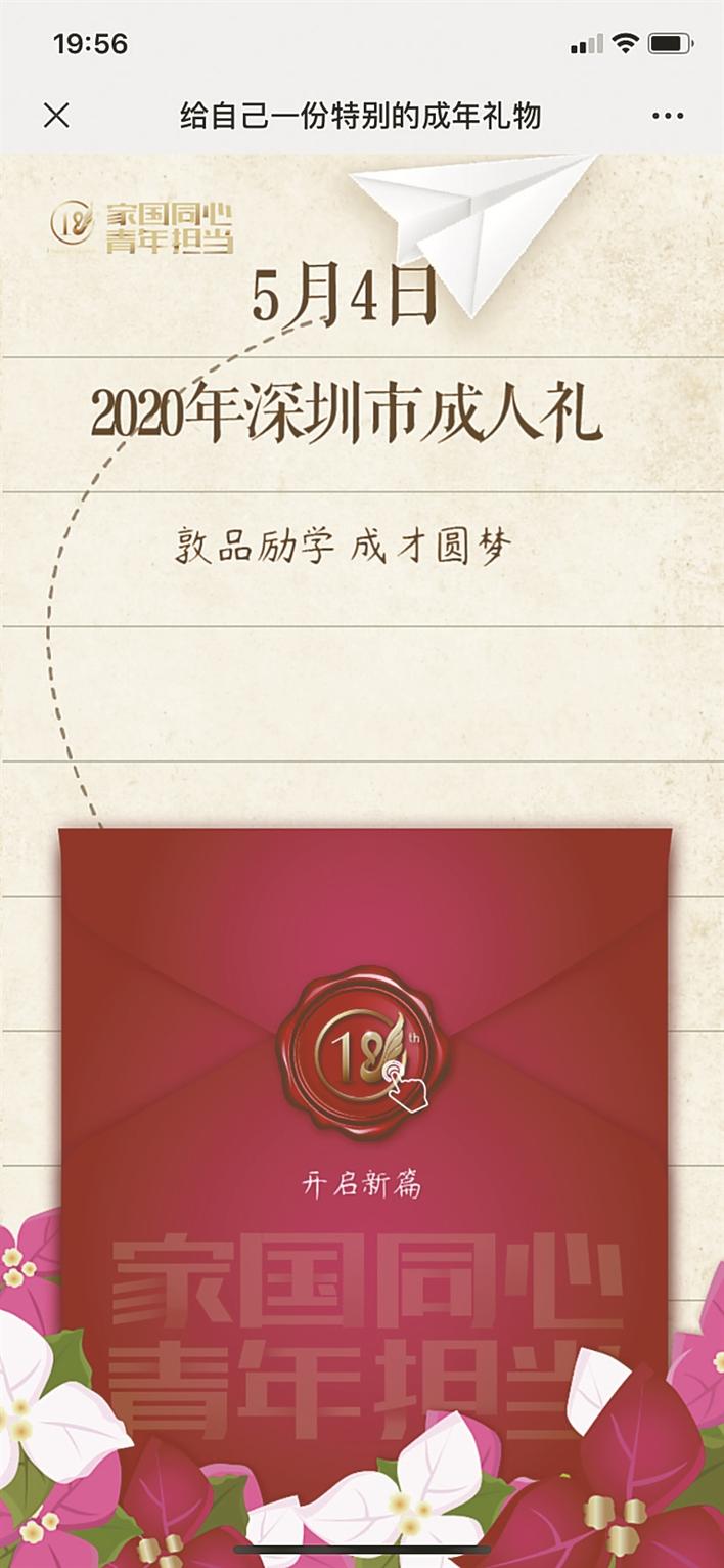 5月4日,由深圳市文明辦、深圳市教育局、共青團(tuán)深圳市委員會(huì)主辦,深圳報(bào)業(yè)集團(tuán)深圳晚報(bào)社承辦的“2020深圳市成人禮”線上宣誓典禮舉行,吸引了深圳眾多即將成年的學(xué)子積極參加。對(duì)這次特殊的成人宣誓典禮,學(xué)子們紛紛表示很特別,很暖心。