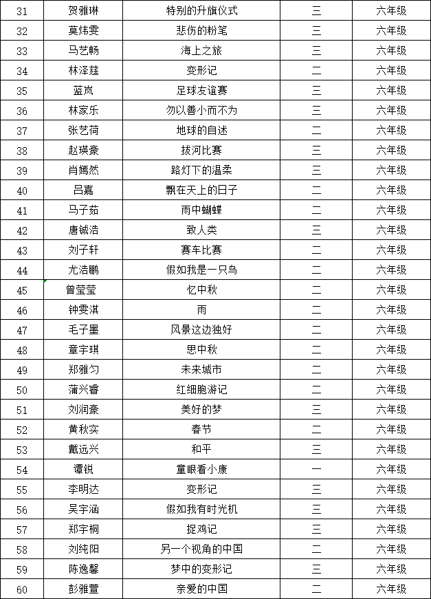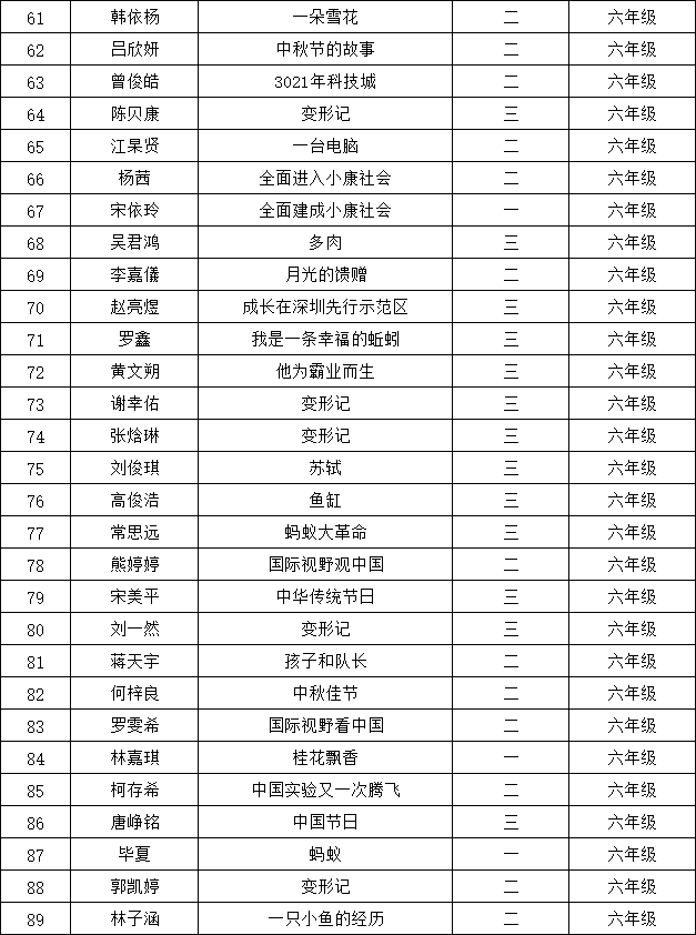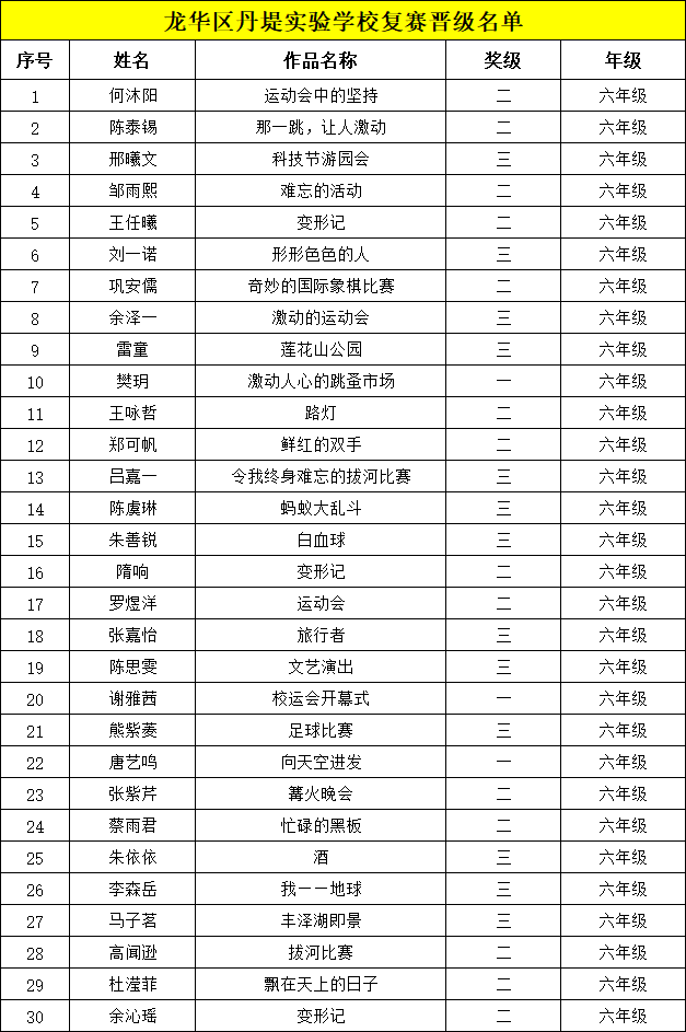自2021年1月,活動征稿啟動以來,獲得了深圳市廣大中小學生、教師、文學愛好者的熱烈響應(yīng)積極參與,吸引了深圳百余所學校的上萬人關(guān)注報名?,F(xiàn)公布龍華區(qū)丹堤實驗學校晉級復(fù)賽名單如下: