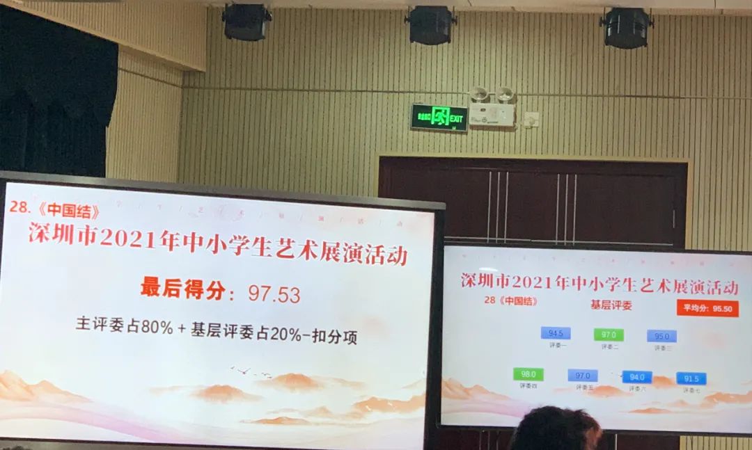 二實(shí)青春舞蹈團(tuán)以原創(chuàng)作品《中國結(jié)》在全市各區(qū)以及市直屬學(xué)校選拔出來的37個節(jié)目中脫穎而出,獲得全場最高分!接下來,青春舞蹈團(tuán)將代表深圳市參加省賽,有望沖擊全國決賽!此外,二實(shí)花語合唱團(tuán)也憑借大合唱《啟程》《春天來了》榮獲深圳市2021年中小學(xué)藝術(shù)展演(聲樂)中學(xué)甲組一等獎。劉斯丹、袁丁、徐裊、張日丹等老師榮獲優(yōu)秀指導(dǎo)老師獎。