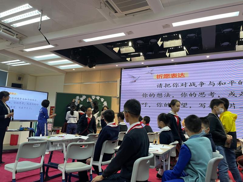 上午8:30分,益田小學(xué)一樓禮堂內(nèi)首先進(jìn)行室內(nèi)升旗儀式,在場(chǎng)師生滿(mǎn)懷祭奠之情,為受難者默哀一分鐘,致敬逝者,寄托民族哀思。接著,四(3)班中隊(duì)表演了相關(guān)詩(shī)朗誦以及“銘記歷史,努力學(xué)習(xí)宣誓“活動(dòng),最后,益田小學(xué)名師、福田區(qū)品牌課程主持人嚴(yán)霞老師帶領(lǐng)學(xué)生上了一節(jié)別開(kāi)生面的思政課 《和平是什么》,嚴(yán)老師通過(guò)閱讀相關(guān)繪本和文字,以及學(xué)生喜聞樂(lè)見(jiàn)的講故事、繪本閱讀、觀(guān)看視頻等多樣的教學(xué)方式,引導(dǎo)學(xué)生了解公祭日的由來(lái),思考、感知戰(zhàn)爭(zhēng)的慘痛與和平的可貴,時(shí)刻謹(jǐn)記中國(guó)遭受過(guò)的屈辱歷史決不能重演!