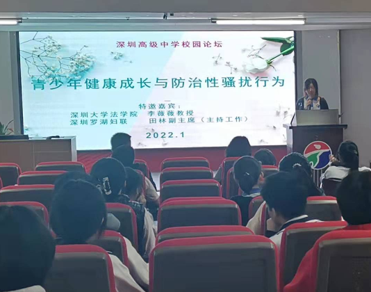 讀特客戶端·深圳新聞網2022年1月8日訊(記者 陳彬)為進一步加強校園性騷擾防治,推動深圳在“法治城市示范”建設工作上先行示范,1月8日,深圳市高級中學舉辦“青少年健康成長與防治性騷擾行為”主題論壇,邀請深圳市羅湖區(qū)婦聯(lián)副主席田林、深圳大學法學院李薇薇教授、深圳市高級中學學生代表吳雅涵同學擔任主講,深圳市高級中學國際部高年級同學到場聆聽。