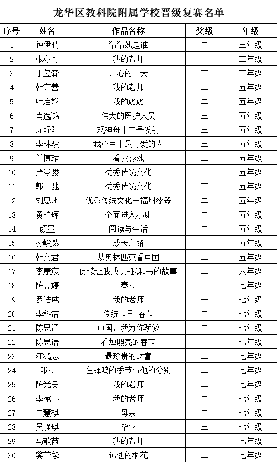 冰心文學盛典 | 龍華區(qū)教科院附屬學校晉級復賽名單公布