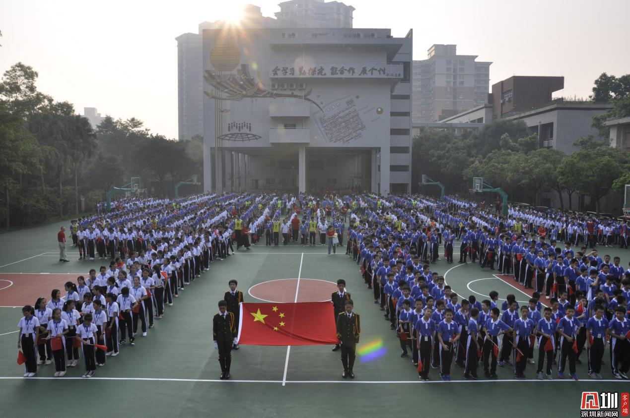 9月30日,在新中國(guó)成立70周年到來(lái)之際,深圳市福田區(qū)梅山中學(xué)全體師生用一場(chǎng)特殊的升旗儀式為祖國(guó)母親慶生。
