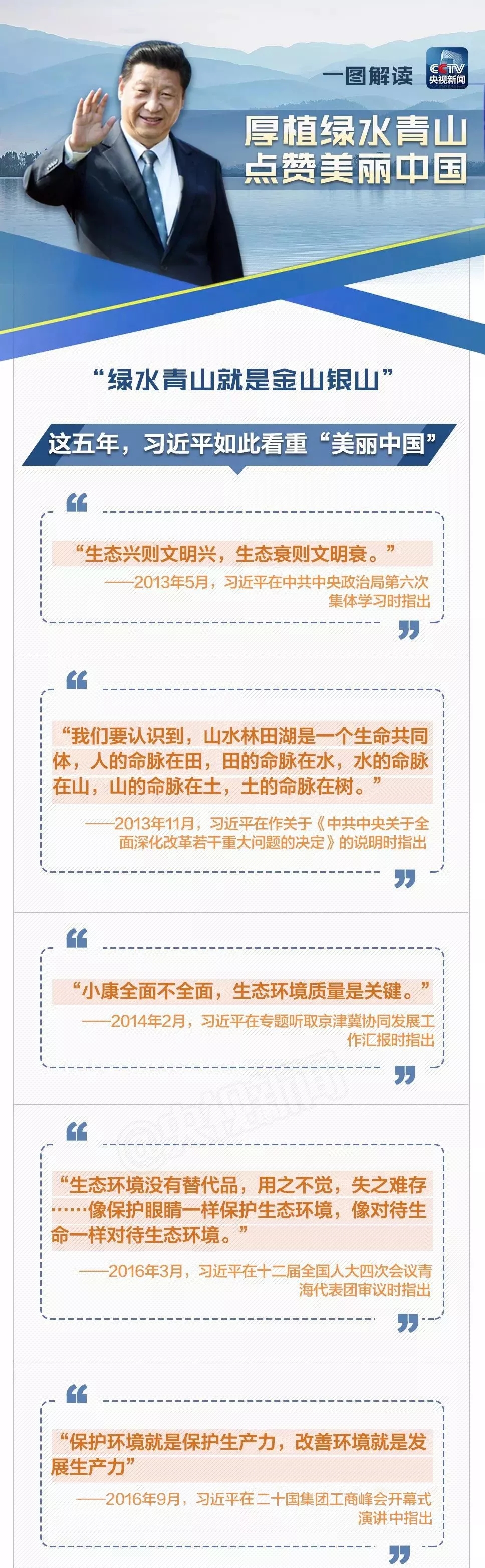 在總書(shū)記的引領(lǐng)之下,十八大以來(lái)我國(guó)建立并實(shí)施中央環(huán)境保護(hù)督察制度,大力推動(dòng)綠色發(fā)展,深入實(shí)施大氣、水、土壤污染防治三大行動(dòng)計(jì)劃,率先發(fā)布《中國(guó)落實(shí)2030年可持續(xù)發(fā)展議程國(guó)別方案》,實(shí)施《國(guó)家應(yīng)對(duì)氣候變化規(guī)劃(2014-2020年)》,推動(dòng)生態(tài)環(huán)境保護(hù)發(fā)生歷史性、轉(zhuǎn)折性、全局性變化。生態(tài)環(huán)境持續(xù)改善,碩果累累: