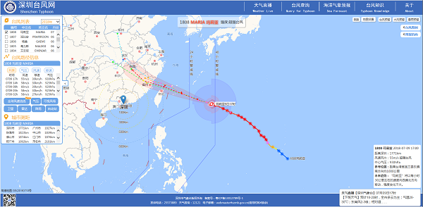 深圳臺風網顯示的第8號臺風“瑪莉亞”移動軌跡