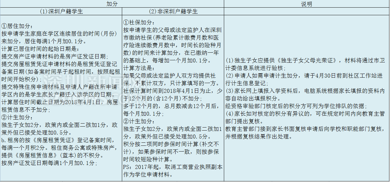 入學(xué)必看!2018深圳10區(qū)小一初一積分計算標準在此