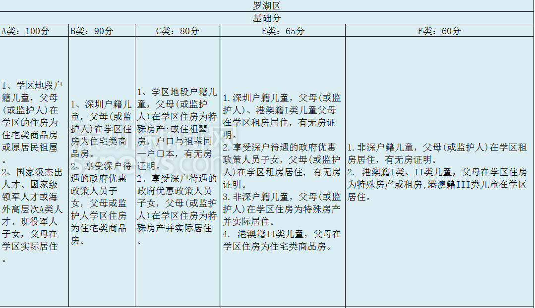 羅湖區(qū)采取“類別+積分,類別優(yōu)先,后取積分”招生方法。