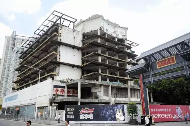 ▲破舊的南油酒店與翻新的南門一坊商業(yè)街形成巨大的視覺反差。蛇口消息報(bào)記者賀志熙攝