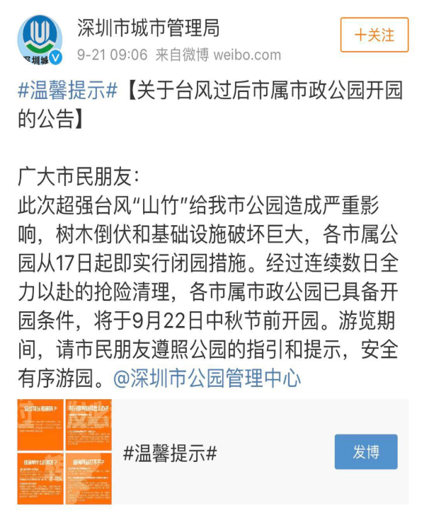 經(jīng)受過(guò)臺(tái)風(fēng)洗禮后的深圳市屬公園今天!??!終于都開(kāi)園啦!