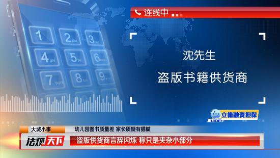 為了證明自己并未與供貨商有所勾結(jié),園長(zhǎng)當(dāng)場(chǎng)給供貨商沈先生打了電話,面對(duì)大家的質(zhì)問(wèn)沈先生言辭閃爍。面對(duì)園長(zhǎng)的質(zhì)疑,這名供貨商剛開(kāi)始只承認(rèn)自己所供的書(shū)籍只有一小部分是盜版,不過(guò),在園長(zhǎng)的質(zhì)問(wèn)下,最后他終于承認(rèn),自己提供的書(shū)全部都是盜版書(shū)籍。