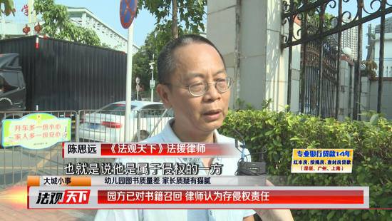 隨后園長(zhǎng)表示,當(dāng)天會(huì)將所有的課本進(jìn)行召回,同時(shí)將會(huì)與郭先生進(jìn)行對(duì)接,聯(lián)系好正版渠道的銷(xiāo)售商,為孩子們換上正版的書(shū)籍?!斗ㄓ^天下》法援律師陳思遠(yuǎn)表示,目前看來(lái)園方得知情況后處理問(wèn)題的態(tài)度值得肯定,但是同時(shí)作為使用方銷(xiāo)售方,也需要提高辨別意識(shí),避免因此導(dǎo)致不必要的麻煩。(記者杜威)