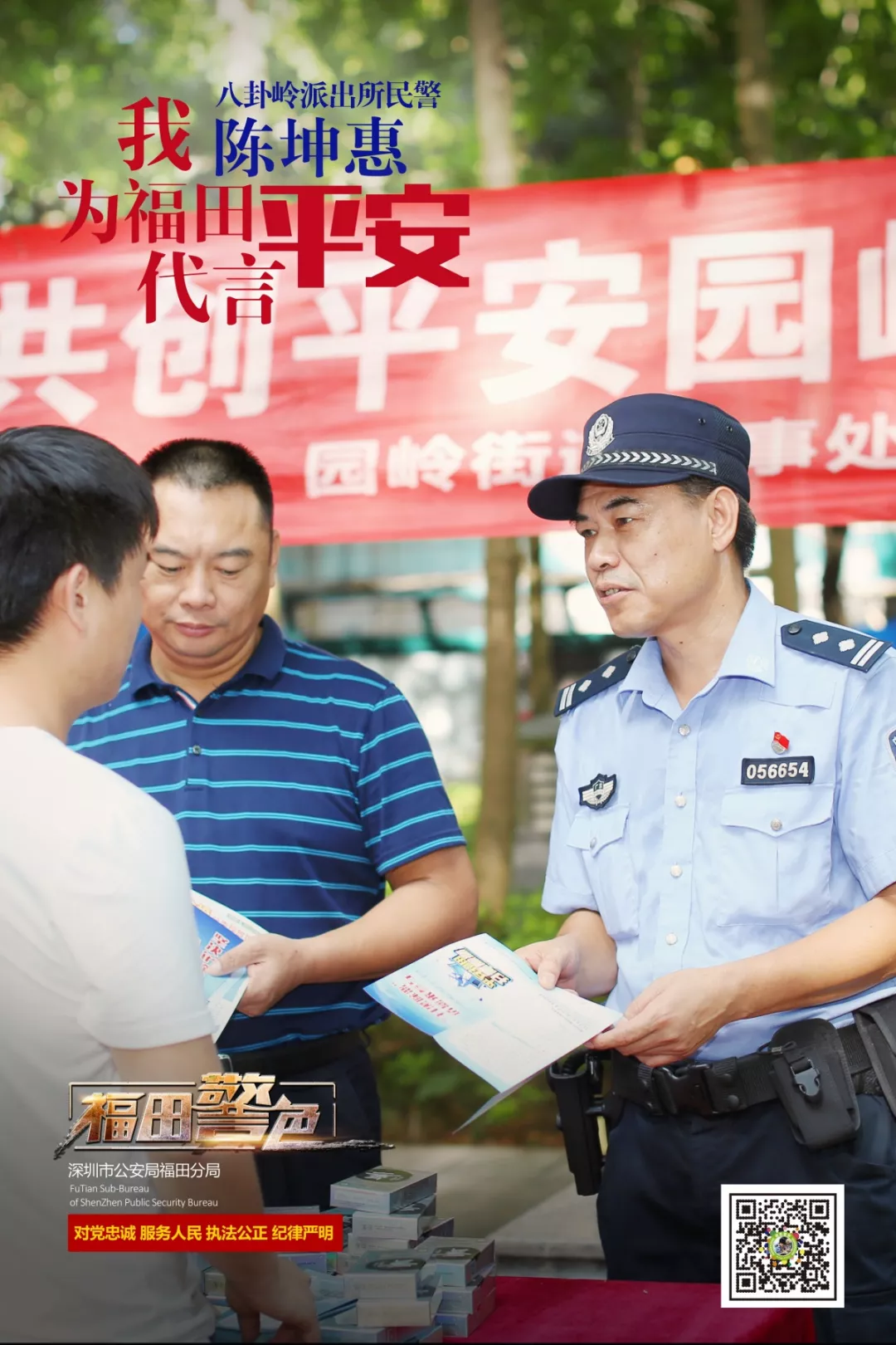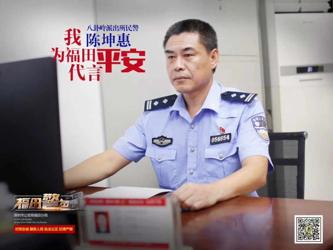 1995年,陳坤惠加入福田警隊,成為福田第一批巡警;2003年,調至八卦嶺派出所,開啟了扎根社區(qū)的警隊生涯。23年來,陳坤惠長年工作在基層一線,點點滴滴做好各項工作,甘當勤懇奉獻的“老黃?!?。