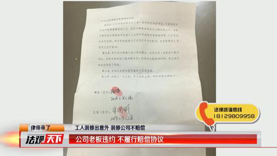 事件發(fā)生后,在記者和龍華區(qū)大良社區(qū)工作站的調(diào)解下,工人朱先生和蜂巢裝飾有限公司雙方達(dá)成了一致的賠償協(xié)議。蜂巢裝飾有限公司的老板陽鋒承認(rèn)朱先生是在其承接的工程施工現(xiàn)場受傷,并承諾給朱先生10萬元的賠償金。在賠償協(xié)議書上,雙方明確約定10萬元的賠償金分兩次支付給朱先生。一次是今年9月10號,支付給工人朱先生7萬元賠償金。一次是今年12月31號,支付3萬元賠償金。但是9月10號已過,工人朱先生仍然沒有收到蜂巢裝飾有限公司的賠償金,這時的他有些著急了。