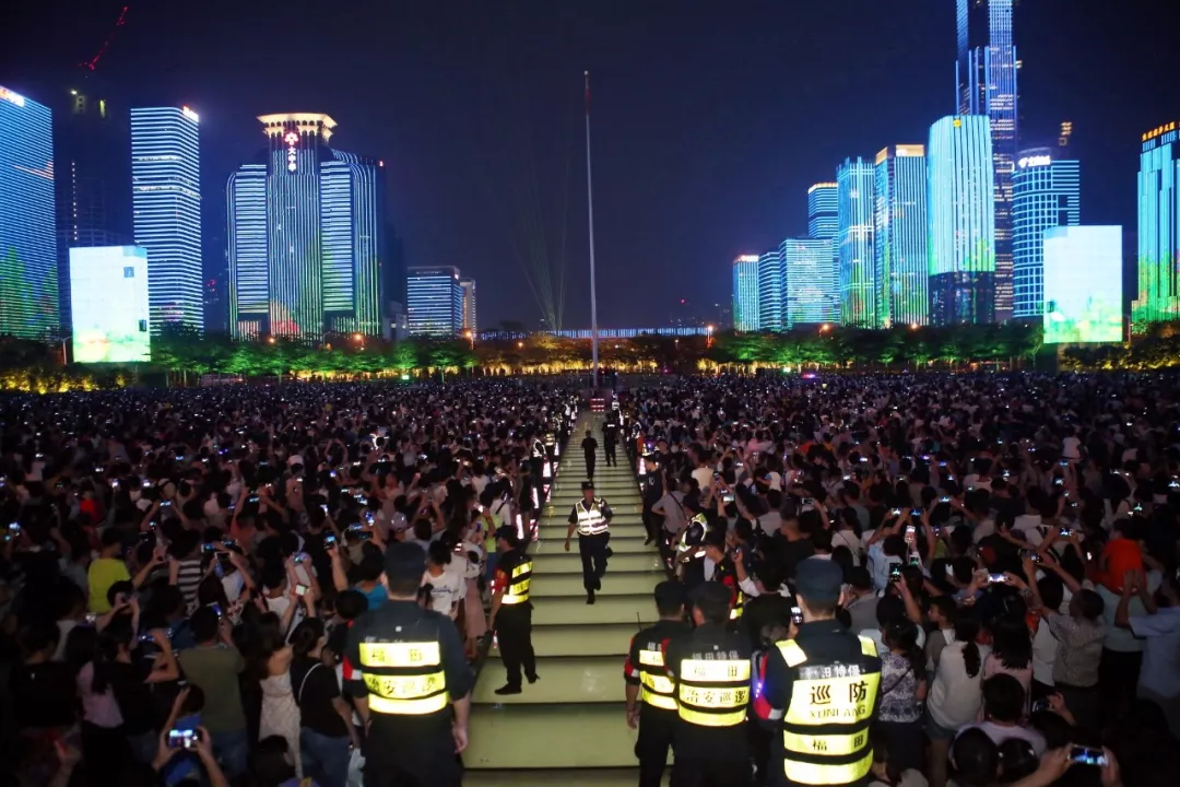 深圳市民中心是開放式場地,每天下午18時許,龐大的人流開始從四面八方涌來觀看燈光秀,給周邊道路交通和現(xiàn)場管理帶來極大壓力。福田警方周密部署、科學(xué)設(shè)置“七道防線”和“八片防區(qū)”,設(shè)立現(xiàn)場指揮中心,采取“核心封控、近端管控、遠(yuǎn)端疏導(dǎo)”的方式疏導(dǎo)擁擠人流。劃分管控區(qū)域、加裝現(xiàn)場防沖撞設(shè)施、開展武裝巡邏;各部門捆綁作業(yè)、疏散有序、措施到位。